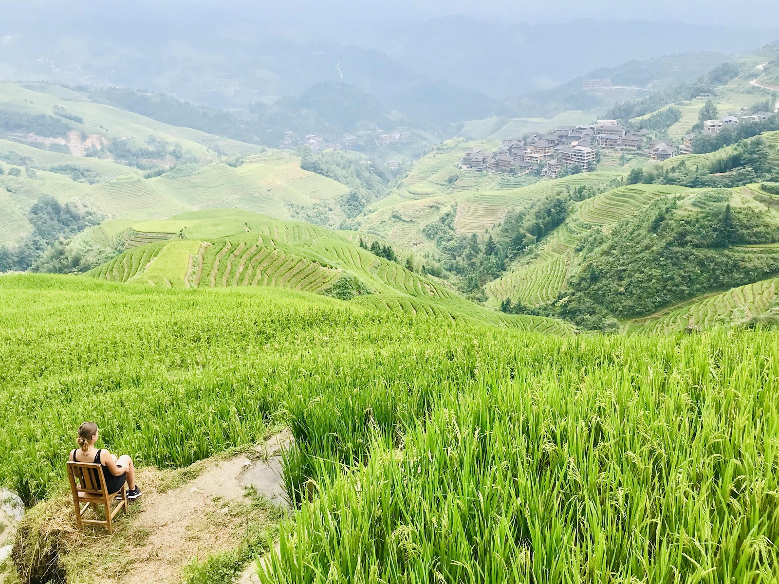 Une succession de bus , une bonne marche avec les valises en mode off road nous arrivons enfin à notre hôtel au cœur des rizières . La récolte n a pas encore eu lieu les terrasses Sont bien vertes. Le premier jour nous marchons à travers les rizières pour nous rendre aux différents points de vues en prenant de la hauteur . Les paysages sont magnifiques , nous les voyons à perte de vue , quelques rayons de soleil et le paysage est encore Plus beau . Nous faisons le tour des petites villages alentours , une quiétude , pas un bruit cela faisait longtemps ... le lendemain il pleut beaucoup heureusement que nous avons fait de beaux clichés la veille , demain c est le départ pour Xingping ...